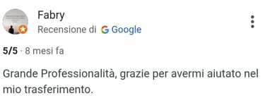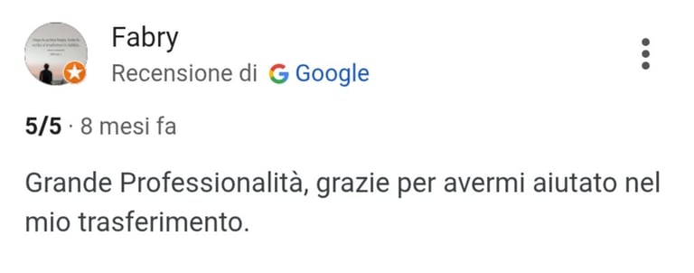 Per i clienti che hanno scelto di affidarsi a noi per il loro trasferimento, offriamo un servizio di consulenza per trovare la migliore opzione assicurativa e garantire la tranquillità che ognuno di noi desidera per la propria famiglia. Vi consiglieremo la polizza più adatta alle vostre esigenze specifiche, in modo da offrire una copertura completa e affidabile.