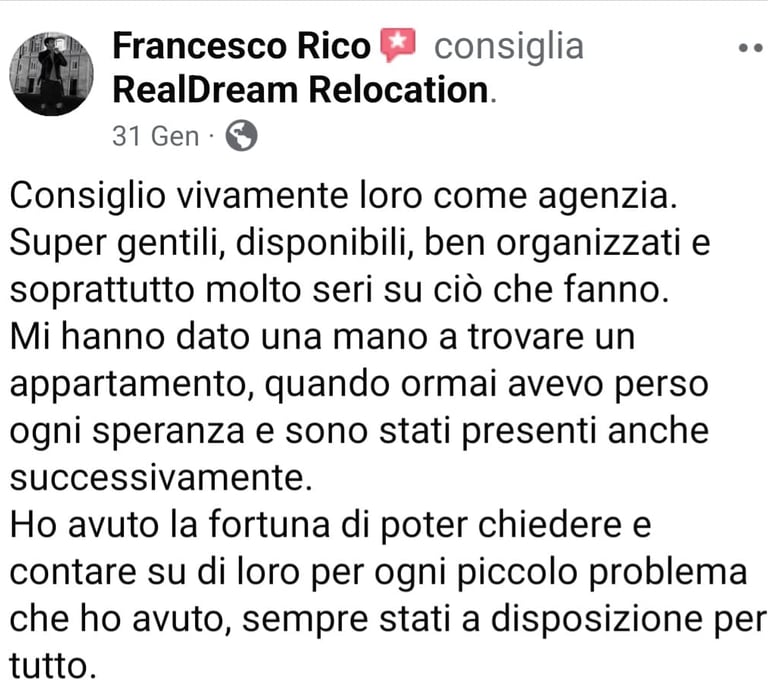 A seconda delle vostre esigenze, vi proporremo le soluzioni che abbiamo già disponibili, oppure Inizieremo il lavoro di ricerca della vostra soluzione abitativa in base ai parametri che ci avete fornito, con l'utilizzo di database immobiliari e contatti con agenzie locali ci impegniamo a trovare opzioni che soddisfino le vostre esigenze. Prepareremo un elenco di immobili, selezionati con dettagli come: prezzo di affitto, dimensioni, caratteristiche e zona di riferimento.