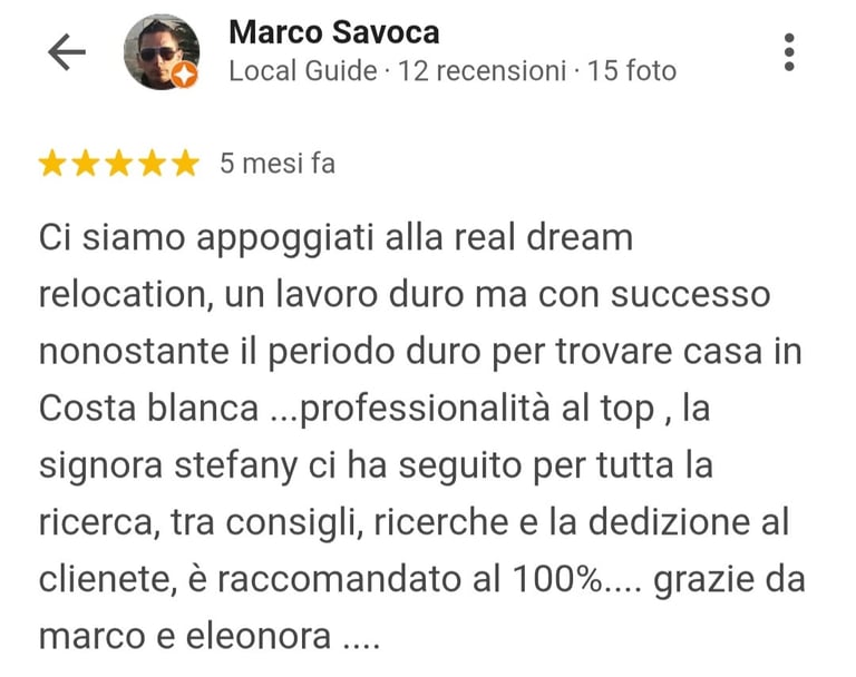 Responsabile commerciale della Real Dream Relocation, guida con passione e determinazione il nostro team verso l'eccellenza nei servizi di assistenza trasferimento nella provincia di Alicante, garantendo così che ogni cliente riceva servizi professionali e di alta qualità. La sua filosofia di leadership si basa su valori fondamentali come l'attenzione al cliente, la trasparenza e l'affidabilità, che sono al centro della nostra missione aziendale.
